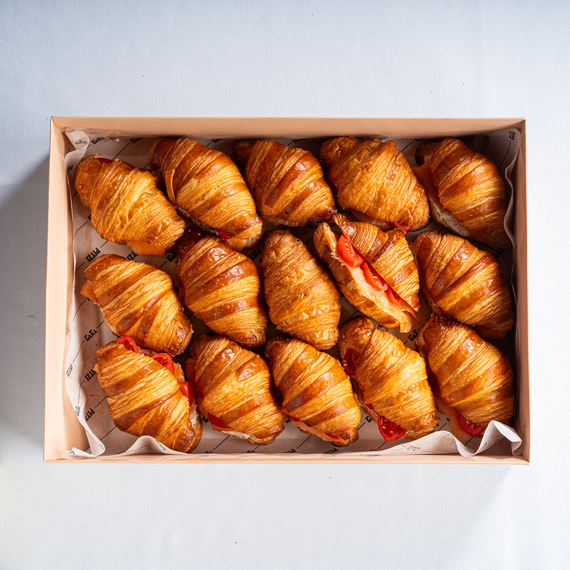 מיני קרואסון גבינת שמנת, סלמון מעושן, פרוסת עגבניית שרי