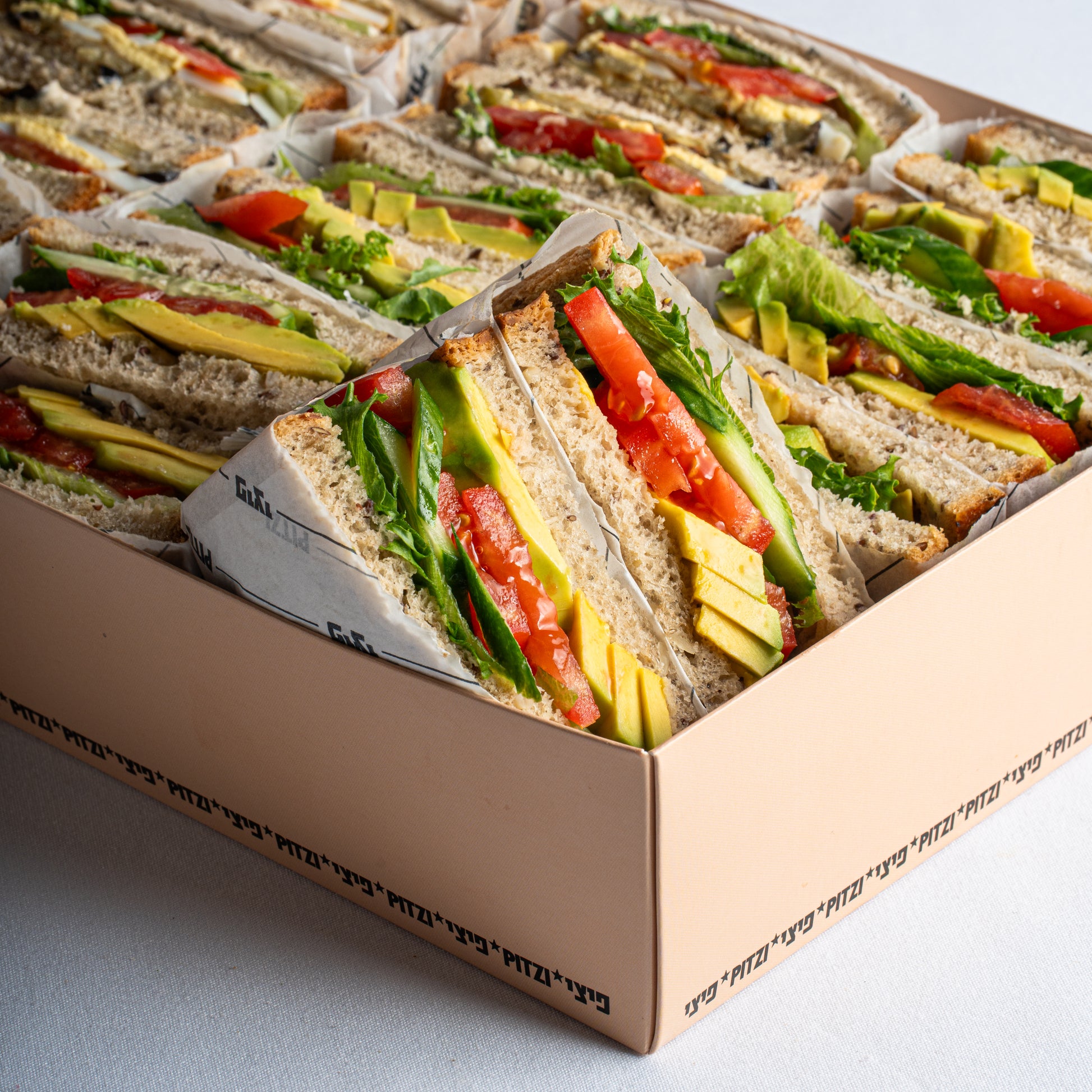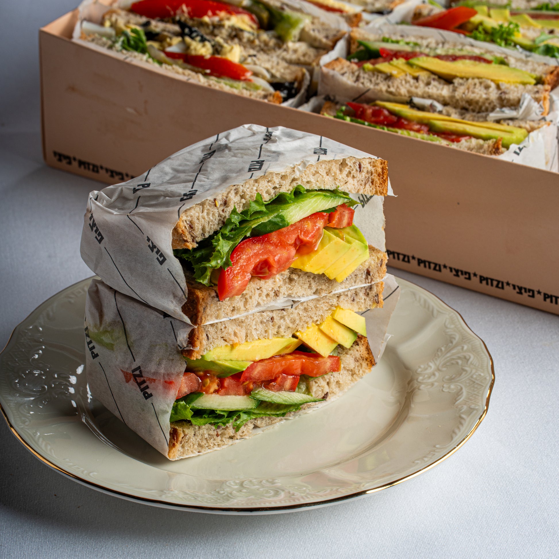 כריכי קסטן דגנים פרוסות אבוקדו טרי, עגבניה, חסה ומלפפון ירוק